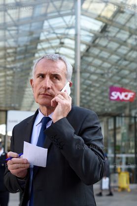 Guillaume Pepy, président de la SNCF, au téléphone - Paris - 21/04/2015 - Photo © Lionel Préau +33 (0)6 68 12 83 77