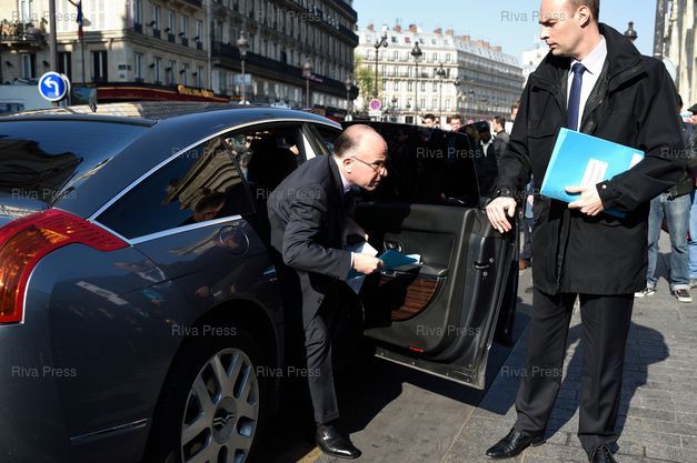 Bernard Cazeneuve sort de voiture - Paris - 21/04/2015 - Photo © Lionel Préau +33 (0)6 68 12 83 77
