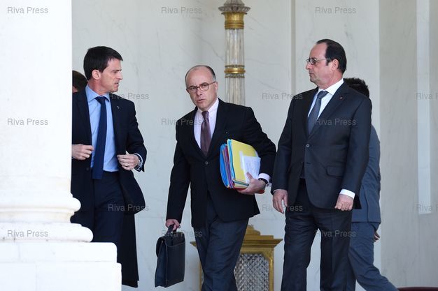 Mots-clés : 2015, Bernard Cazeneuve, cazeneuve, Conseil des Ministres, Elysée, Francois Hollande, Hollande, Manuel Valls, Ministre, Paris, Valls