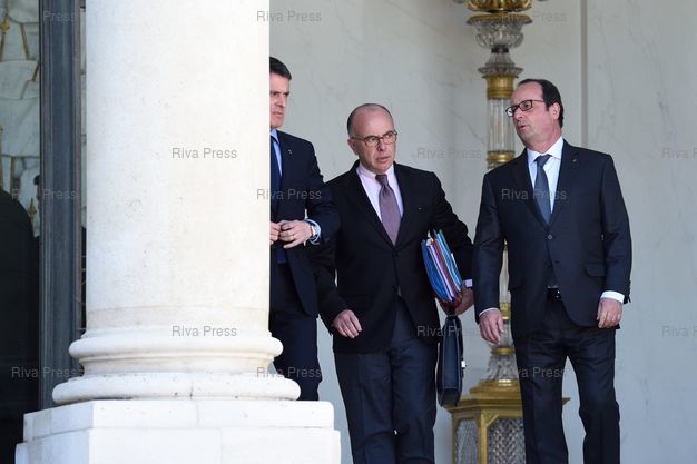 Mots-clés : 2015, Bernard Cazeneuve, cazeneuve, Conseil des Ministres, Elysée, Francois Hollande, Hollande, Manuel Valls, Ministre, Paris, Valls