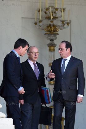 Mots-clés : 2015, Bernard Cazeneuve, cazeneuve, Conseil des Ministres, Elysée, Francois Hollande, Hollande, Manuel Valls, Ministre, Paris, Valls
