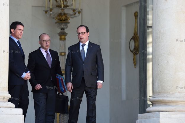 Mots-clés : 2015, Bernard Cazeneuve, cazeneuve, Conseil des Ministres, Elysée, Francois Hollande, Hollande, Manuel Valls, Ministre, Paris, Valls