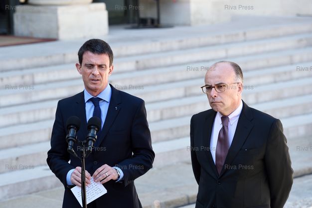 Mots-clés : 2015, Bernard Cazeneuve, cazeneuve, Conseil des Ministres, Elysée, Manuel Valls, Ministre, Paris, Valls