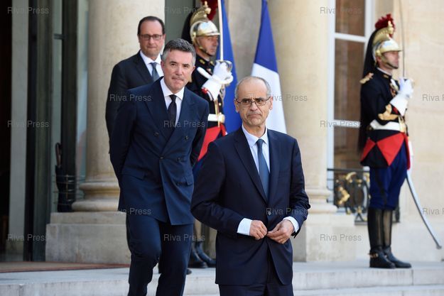 François Hollande, Vicenç Mateu Zamora et Antoni Marti Petit après l'entretien - Paris - 05/06/2015 - Photo © Lionel Préau +33 (0)6 68 12 83 77