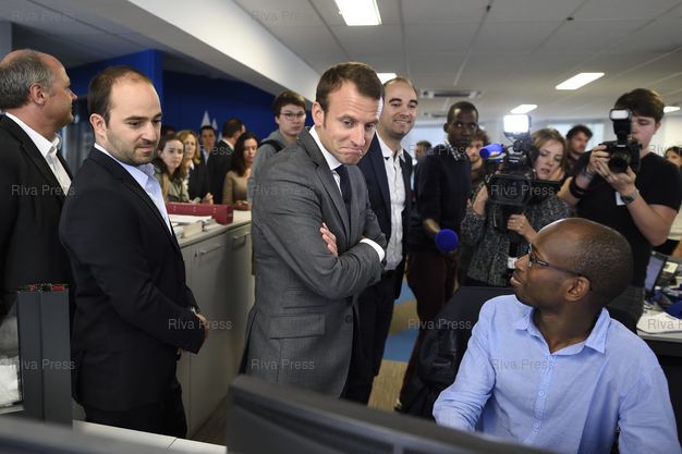 Légende : Emmanuel Macron, ministre de l'Economie, de l'Industrie et du Numérique, rencontre des chefs d'entreprises de PME en Seine Saint-Denis.