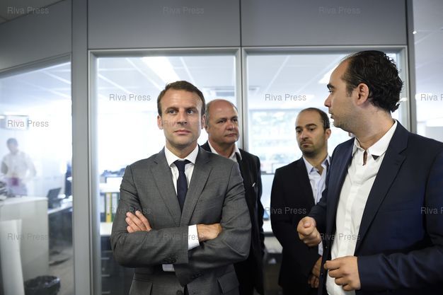 Titre : Emmanuel Macron rencontre des chefs d'entreprises à Saint-Ouen