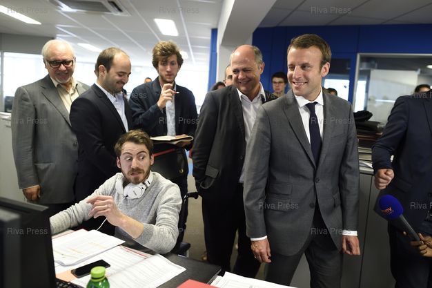 Légende : Emmanuel Macron, ministre de l'Economie, de l'Industrie et du Numérique, rencontre des chefs d'entreprises de PME en Seine Saint-Denis.