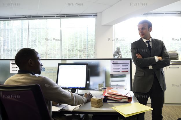 Titre : Emmanuel Macron rencontre des chefs d'entreprises à Saint-Ouen