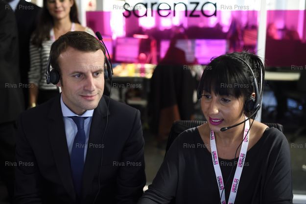 Emmanuel Macron avec une opératrice du Service client - Paris - 26/10/2015 - Photo © Lionel Préau +33 (0)6 68 12 83 77