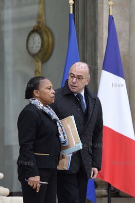 Mots-clés : 2015, Bernard Cazeneuve, cazeneuve, Christiane Taubira, conseil de defense, defence council, Elysée, Paris, taubira