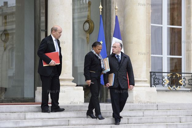 Mots-clés : 2015, Bernard Cazeneuve, cazeneuve, Christiane Taubira, conseil de defense, defence council, Elysée, jean yves le drian, le drian, Paris, taubira