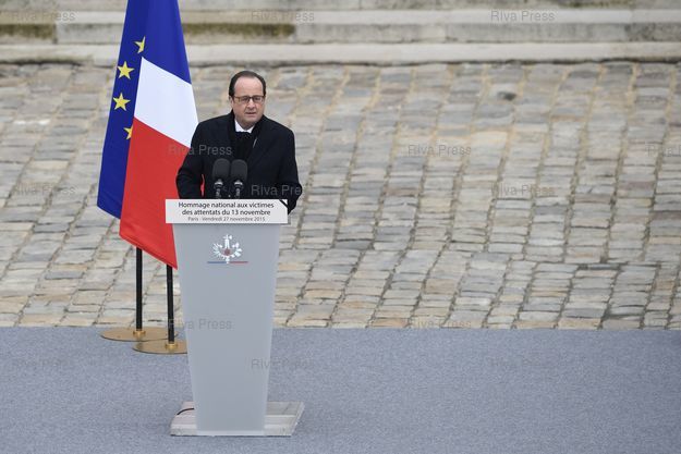 Légende : Hommage national aux victimes des attentats du 13 novembre - Hôtel national des Invalides.