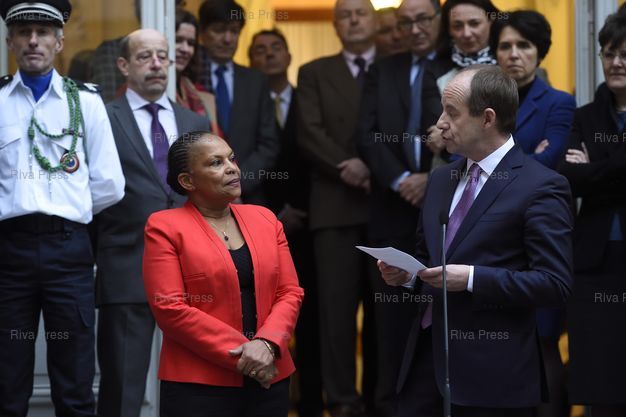 Légende : Passation de pouvoir entre Christiane Taubira et Jean-Jacques Urvoas au Ministère de la Justice - Paris - 27/01/2016 - Photo © Lionel Préau +33 (0)6 68 12 83 77
