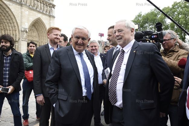 Légende : Alain Juppé, candidat à la primaire de la droite, et Jean Pierre Raffarin, sénateur, se rendent à la Fête du pain - Parvis de Notre-Dame de Paris /// Alain Juppé, candidate to the primary election of the right, and Jean Pierre Raffarin, senator, visit the Bread Festival - Notre-Dame square - Paris - 24/05/2016 - Photo © Lionel Préau +33 (0)6 68 12 83 77