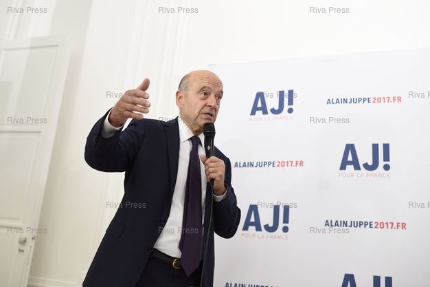 Légende : Alain Juppé s'exprime sur les conséquences des attentats et présente ses mesures pour lutter contre le terrorisme, lors d'un point presse à son QG de campagne - Paris - 29/07/2016 - Photo © Lionel Préau +33 (0)6 68 12 83 77