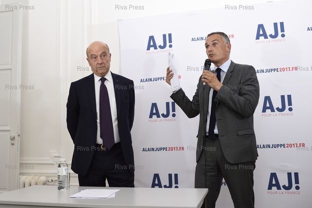 Légende : Alain Juppé s'exprime sur les conséquences des attentats et présente ses mesures pour lutter contre le terrorisme, lors d'un point presse à son QG de campagne. En présence d'Arnaud Danjean, député européen, membre de la commission Affaires Etrangères & sous-commission Défense du Parlement Européen - Paris - 29/07/2016 - Photo © Lionel Préau +33 (0)6 68 12 83 77