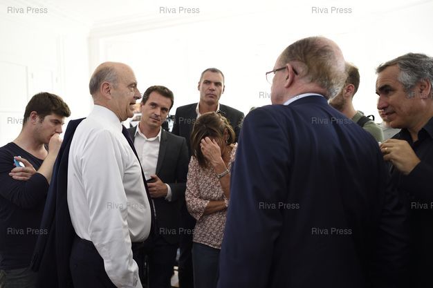 Légende : Alain Juppé s'exprime sur les conséquences des attentats et présente ses mesures pour lutter contre le terrorisme, lors d'un point presse à son QG de campagne - Paris - 29/07/2016 - Photo © Lionel Préau +33 (0)6 68 12 83 77