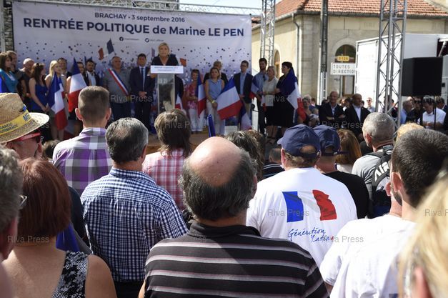 Légende : Marine Le Pen, présidente du Front National, lance sa campagne pour l'élection présidentielle à Brachay /// Marine Le Pen, President of the Front National Party, launches her presidential campaign in Brachay - Brachay - 03/09/2016 - Photo © Lionel Préau +33 (0)6 68 12 83 77