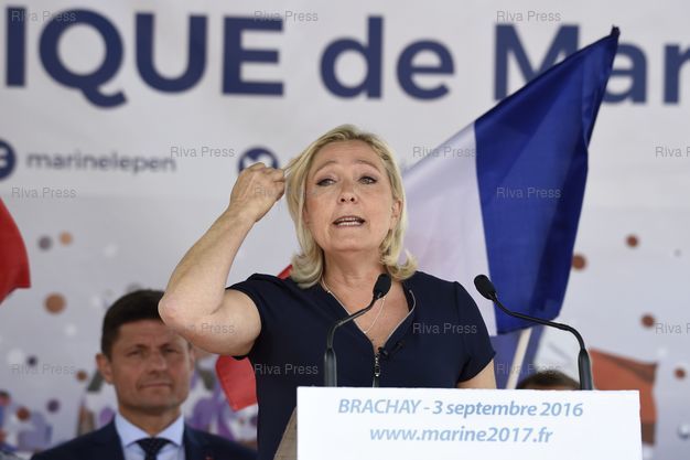 Légende : Marine Le Pen, présidente du Front National, lance sa campagne pour l'élection présidentielle à Brachay /// Marine Le Pen, President of the Front National Party, launches her presidential campaign in Brachay - Brachay - 03/09/2016 - Photo © Lionel Préau +33 (0)6 68 12 83 77