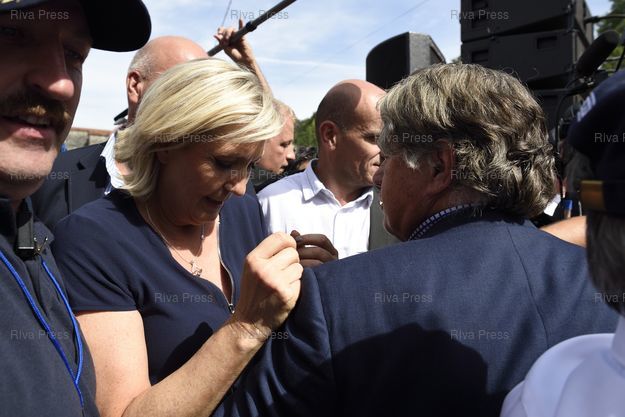 Légende : Marine Le Pen, présidente du Front National, lance sa campagne pour l'élection présidentielle à Brachay. Marine Le Pen - Gilbert Collard /// Marine Le Pen, President of the Front National Party, launches her presidential campaign in Brachay. Marine Le Pen - Gilbert Collard - Brachay - 03/09/2016 - Photo © Lionel Préau +33 (0)6 68 12 83 77