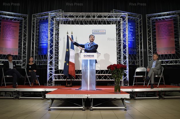 Légende : Arnaud Montebourg, candidat à l'élection présidentielle. présente son " Projet France " à Gonesse lors d'une réunion publique - Gonesse - 19/09/2016 - Photo © Lionel Préau +33 (0)6 68 12 83 77