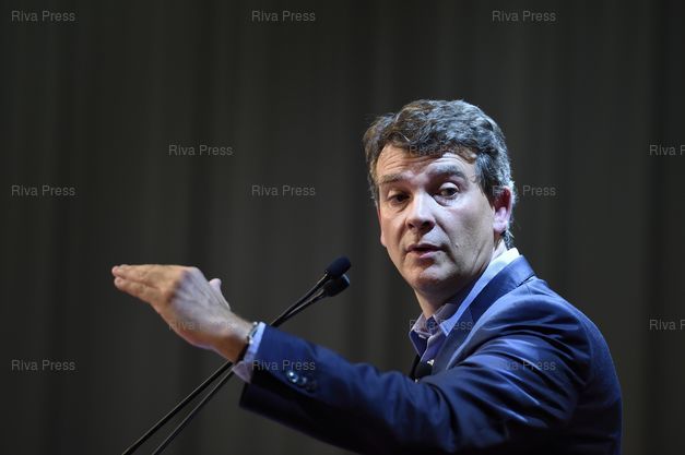 Légende : Arnaud Montebourg, candidat à l'élection présidentielle. présente son " Projet France " à Gonesse lors d'une réunion publique - Gonesse - 19/09/2016 - Photo © Lionel Préau +33 (0)6 68 12 83 77