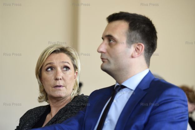 Légende : Colloque du Front National sur les seniors " Bien vieillir, un enjeu majeur au XXIème siècle " - Maison de la Chimie. Marine Le Pen, présidente du FN - Florian Philippot, vice-président du FN /// Conference of the Front National Party on seniors. Marine Le Pen, President of the FN - Florian Philippot, Vice-President of the FN - Paris - 20/10/2016 - Photo © Lionel Préau +33 (0)6 68 12 83 77