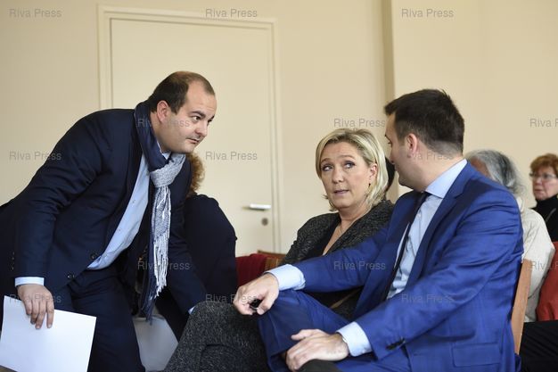 Légende : Colloque du Front National sur les seniors " Bien vieillir, un enjeu majeur au XXIème siècle " - Maison de la Chimie. David Rachline, directeur de campagne de Marine Le Pen - Marine Le Pen, présidente du FN - Florian Philippot, vice-président du FN /// Conference of the Front National Party on seniors. David Rachline, campaign director of Marine Le Pen - Marine Le Pen, President of the FN - Florian Philippot, Vice-President of the FN - Paris - 20/10/2016 - Photo © Lionel Préau +33 (0)6 68 12 83 77