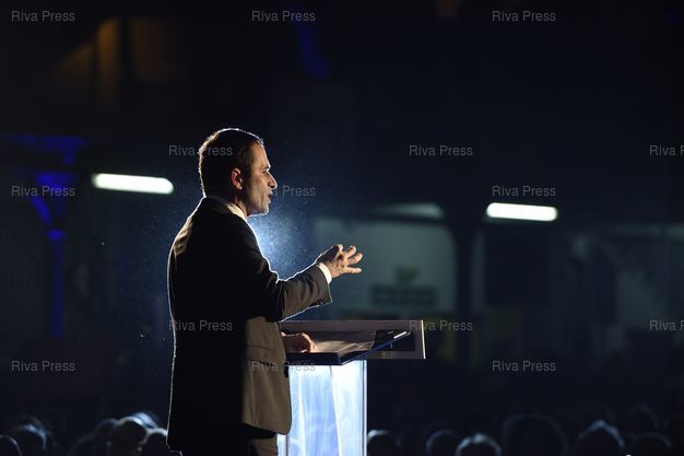 Légende : Meeting de Benoît Hamon, candidat à la primaire de la gauche pour l'élection présidentielle - Gymnase Japy - Paris - 14/12/2016 - Photo © Lionel Préau +33 (0)6 68 12 83 77