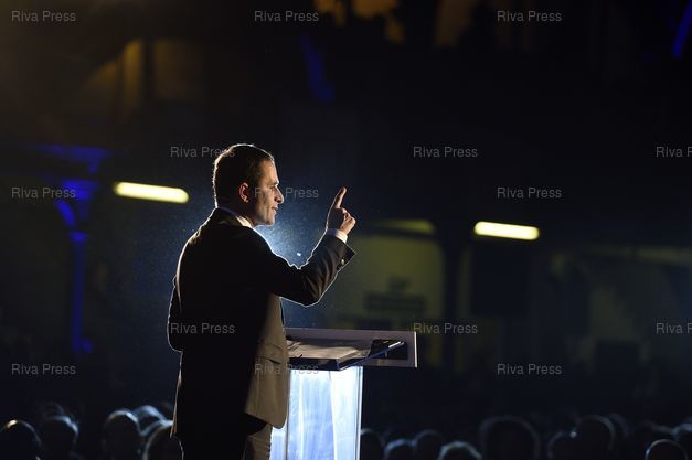 Légende : Meeting de Benoît Hamon, candidat à la primaire de la gauche pour l'élection présidentielle - Gymnase Japy - Paris - 14/12/2016 - Photo © Lionel Préau +33 (0)6 68 12 83 77