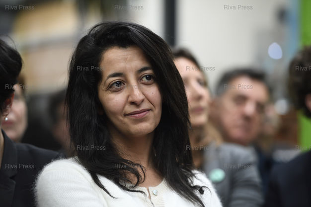 Légende : Yannick Jadot, candidat EELV à la présidentielle, présente ses voeux et son projet présidentiel à la presse - Espace Volumes. Karima Delli - Paris - 11/01/2017 - Photo © Lionel Préau +33 (0)6 68 12 83 77