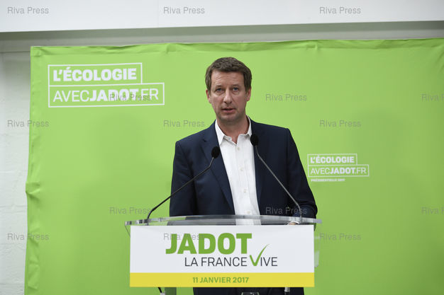 Légende : Yannick Jadot, candidat EELV à la présidentielle, présente ses voeux et son projet présidentiel à la presse - Espace Volumes - Paris - 11/01/2017 - Photo © Lionel Préau +33 (0)6 68 12 83 77