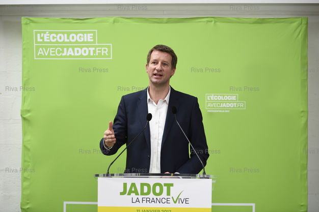 Légende : Yannick Jadot, candidat EELV à la présidentielle, présente ses voeux et son projet présidentiel à la presse - Espace Volumes - Paris - 11/01/2017 - Photo © Lionel Préau +33 (0)6 68 12 83 77