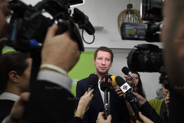 Légende : Yannick Jadot, candidat EELV à la présidentielle, présente ses voeux et son projet présidentiel à la presse - Espace Volumes - Paris - 11/01/2017 - Photo © Lionel Préau +33 (0)6 68 12 83 77