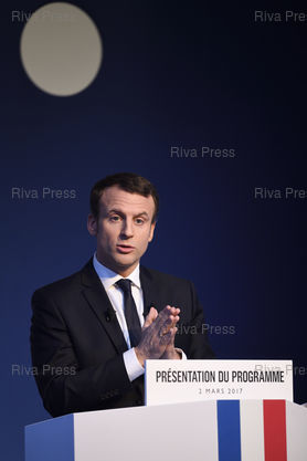 Légende : Emmanuel Macron, candidat du mouvement En Marche ! à l'élection présidentielle, présente son programme lors d'une conférence de presse au Pavillon Gabriel /// Emmanuel Macron, candidate of the movement "En Marche !" to the presidential election, presents his program during a press conference at the Pavillon Gabriel - Paris - 02/03/2017 - Photo © Lionel Préau +33 (0)6 68 12 83 77