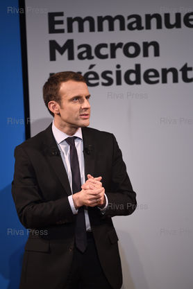 Légende : Emmanuel Macron, candidat du mouvement "En Marche !" à l'élection présidentielle, participe à l'événement organisé par "Elles Marchent !" à l'occasion de la journée internationale des droits des femmes - Théâtre Antoine /// Emmanuel Macron, candidate of the movement "En Marche !" to the presidential election, participates to the event organized by "Elles Marchent !" on International Women's Day - Théâtre Antoine - Paris- 08/03/2017 - Photo © Lionel Préau +33 (0)6 68 12 83 77