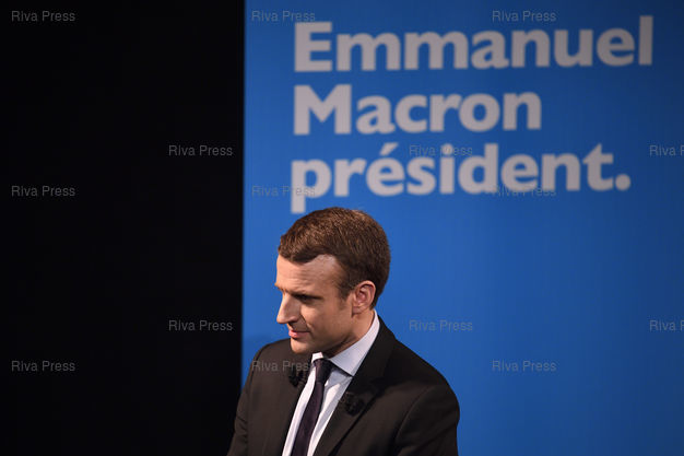 Légende : Emmanuel Macron, candidat du mouvement "En Marche !" à l'élection présidentielle, participe à l'événement organisé par "Elles Marchent !" à l'occasion de la journée internationale des droits des femmes - Théâtre Antoine /// Emmanuel Macron, candidate of the movement "En Marche !" to the presidential election, participates to the event organized by "Elles Marchent !" on International Women's Day - Théâtre Antoine - Paris- 08/03/2017 - Photo © Lionel Préau +33 (0)6 68 12 83 77