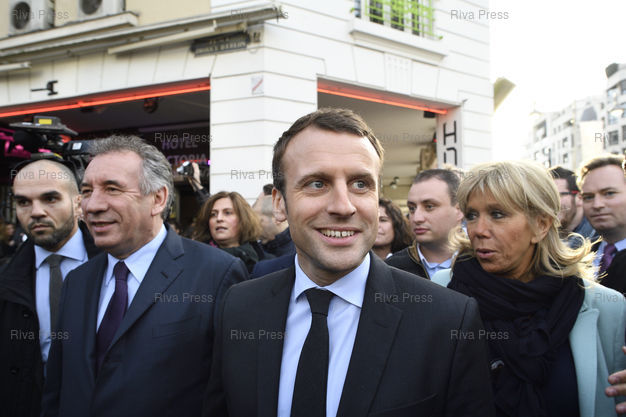 Légende : Emmanuel Macron, candidat du mouvement "En Marche !" à l'élection presidentielle, et François Bayrou dans les rues de Reims avant un meeting. En présence de Brigitte Trogneux, épouse d'Emmanuel Macron /// Emmanuel Macron, candidate of the movement "En Marche !" to the presiderntial election, in the streets of Reims prior to a meeting. With Brigitte Trogneux, wife of Emmanuel Macron - Reims - 17/03/2017 - Photo © Lionel Préau +33 (0)6 68 12 83 77