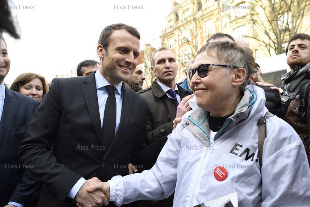 Caption : Emmanuel Macron, candidat du mouvement "En Marche !" à l'élection presidentielle, et François Bayrou dans les rues de Reims avant un meeting /// Emmanuel Macron, candidate of the movement "En Marche !" to the presiderntial election, in the streets of Reims prior to a meeting - Reims - 17/03/2017 - Photo © Lionel Préau +33 (0)6 68 12 83 77