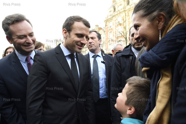 Légende : Emmanuel Macron, candidat du mouvement "En Marche !" à l'élection presidentielle, et François Bayrou dans les rues de Reims avant un meeting. En présence de Jean-(Baptiste Lemoyne, senateur /// Emmanuel Macron, candidate of the movement "En Marche !" to the presiderntial election, in the streets of Reims prior to a meeting. With Jean-Baptiste Lemoyne, senator - Reims - 17/03/2017 - Photo © Lionel Préau +33 (0)6 68 12 83 77