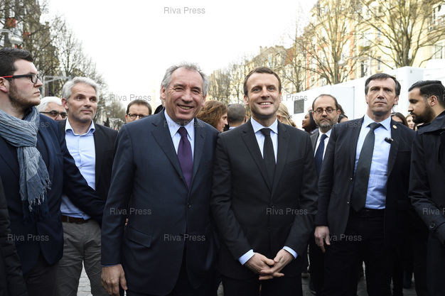 Légende : Emmanuel Macron, candidat du mouvement "En Marche !" à l'élection presidentielle, et François Bayrou dans les rues de Reims avant un meeting /// Emmanuel Macron, candidate of the movement "En Marche !" to the presiderntial election, in the streets of Reims prior to a meeting - Reims - 17/03/2017 - Photo © Lionel Préau +33 (0)6 68 12 83 77