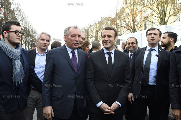 Légende : Emmanuel Macron, candidat du mouvement "En Marche !" à l'élection presidentielle, et François Bayrou dans les rues de Reims avant un meeting /// Emmanuel Macron, candidate of the movement "En Marche !" to the presiderntial election, in the streets of Reims prior to a meeting - Reims - 17/03/2017 - Photo © Lionel Préau +33 (0)6 68 12 83 77