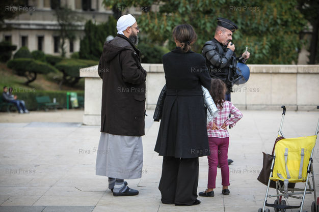 While any event was prohibited. Police and riot police carry out checks of identity and arrest of Muslims on the place du Trocadero.
