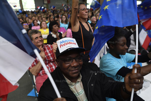 Légende : Meeting d'Emmanuel Macron, candidat du mouvement "En Marche !" à l'élection présidentielle - Paris Event Center /// Meeting of Emmanuel Macron, candidate of the movement "En Marche !" to the presidential election - Paris Event Center - Paris - 01/05/2017 - Photo © Lionel Préau +33 (0)6 68 12 83 77