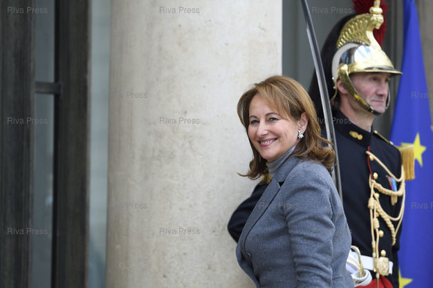 Légende : François Hollande reçoit Sa Majesté Mohammed VI, Roi du Maroc, pour un entretien au palais de l'Elysée. Ségolène Royal, ministre de l'environnement, de l'énergie et de la mer, chargée des relations internationales sur le climat /// François Hollande receives His Majesty Mohammed VI, King of Morocco, at the Elysée Palace. Ségolène Royal, Minister of Environment, Energy and Sea, in charge of international relations on climate - Paris - 02/05/2017 - Photo © Lionel Préau +33 (0)6 68 12 83 77
