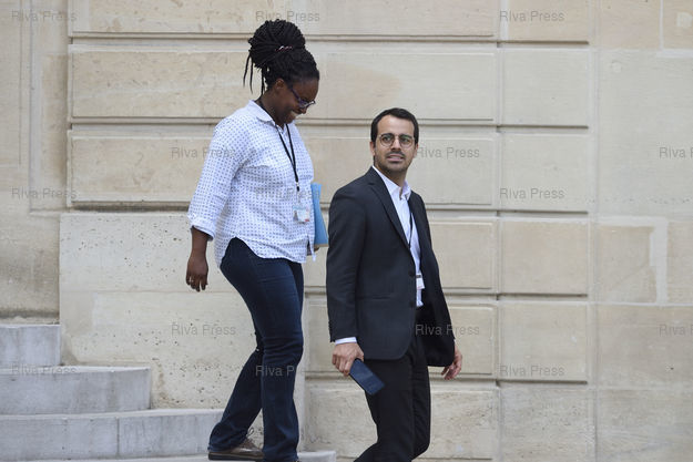 Légende : Emmanuel Macron reçoit Hery Rajaonarimampianina, Président de la République de Madagascar, au Palais de l'Elysée. Sibeth Ndiaye, Conseillère presse et communication /// Emmanuel Macron receives Hery Rajaonarimampianina, President of the Republic of Madagascar, at the Elysee Palace. Sibeth Ndiaye, Press and Communication adviser - Paris - 28/06/2017 - Photo © Lionel Préau +33 (0)6 68 12 83 77