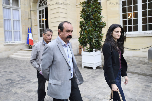 Légende : Edouard Philippe, premier ministre, reçoit Philippe Martinez, secrétaire général de la CGT - Hôtel de Matignon. - Paris - 24/07/2017 - Photo © Lionel Préau +33 (0)6 68 12 83 77