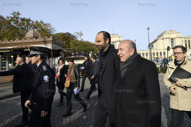 Légende : Edouard Philippe, Premier ministre, et Gérard Collomb, ministre de l'Intérieur rencontrent les forces qui assurent la sécurisation du secteur de la Tour Eiffel /// Edouard Philippe, French Prime Minister, and Gérard Collomb, Minister of the Interior, meet the forces providing the security of the Eiffel Tower area - Paris - 01/11/2017 - Photo © Lionel Préau +33 (0)6 68 12 83 77