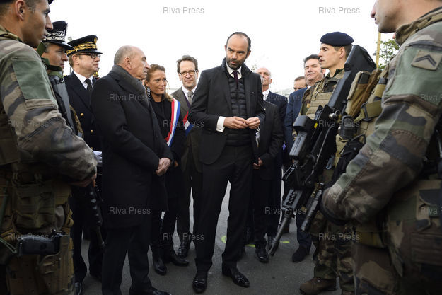 Légende : Edouard Philippe, Premier ministre, et Gérard Collomb, ministre de l'Intérieur rencontrent les forces qui assurent la sécurisation du secteur de la Tour Eiffel /// Edouard Philippe, French Prime Minister, and Gérard Collomb, Minister of the Interior, meet the forces providing the security of the Eiffel Tower area - Paris - 01/11/2017 - Photo © Lionel Préau +33 (0)6 68 12 83 77
