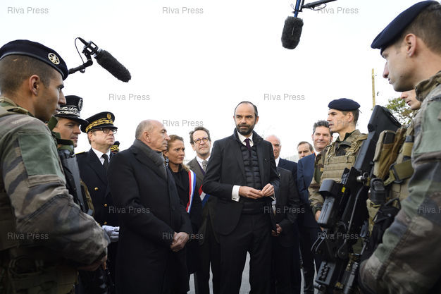 Légende : Edouard Philippe, Premier ministre, et Gérard Collomb, ministre de l'Intérieur rencontrent les forces qui assurent la sécurisation du secteur de la Tour Eiffel /// Edouard Philippe, French Prime Minister, and Gérard Collomb, Minister of the Interior, meet the forces providing the security of the Eiffel Tower area - Paris - 01/11/2017 - Photo © Lionel Préau +33 (0)6 68 12 83 77